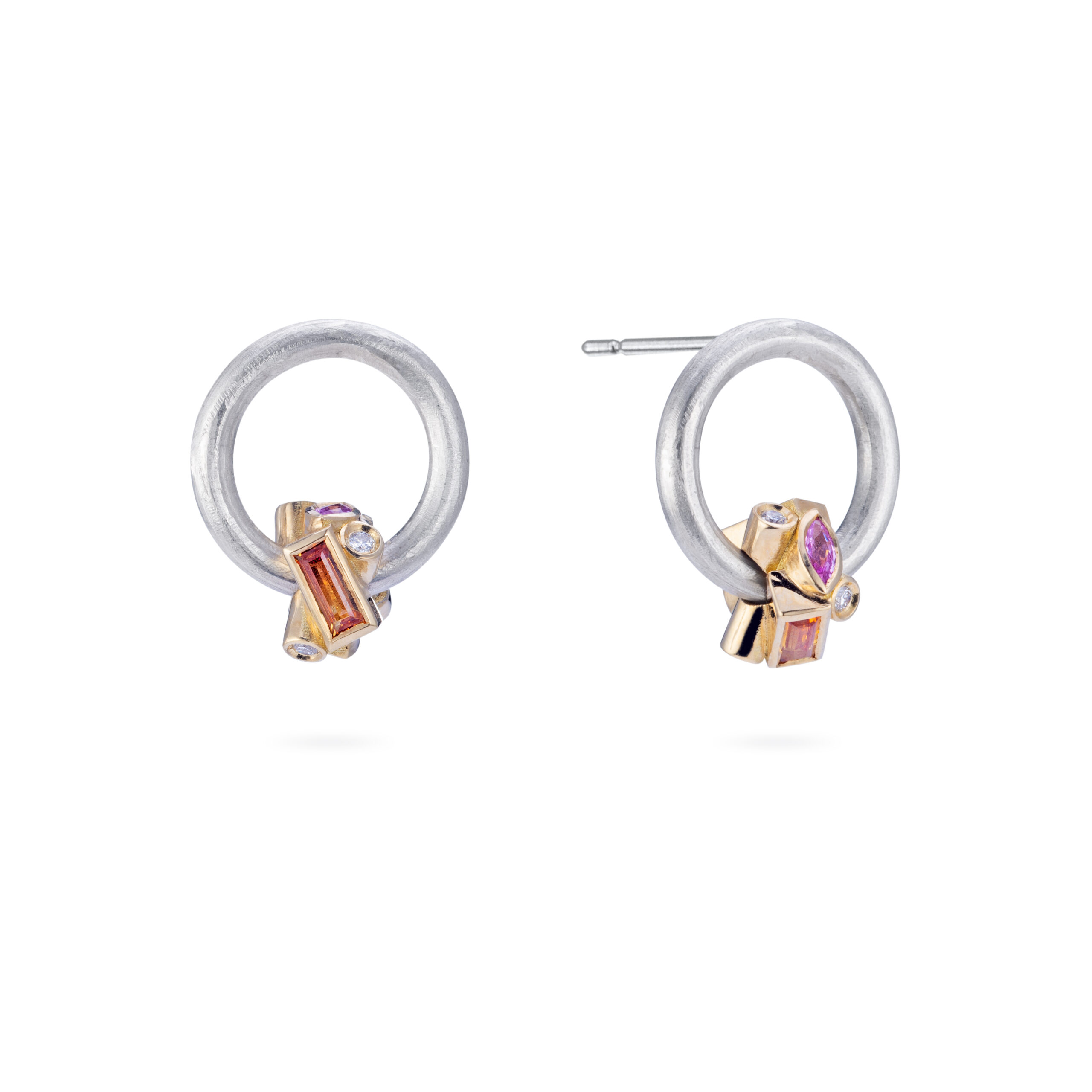 A pair of kinetic studs that bring the sunrise to your ears – the perfect everyday studs with a twist.